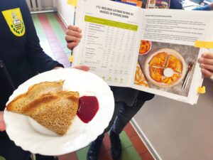 Su 6 klasės mokiniais, padedant visuomenės sveikatos specialistei Ligitai Uvarovai bei matematikos mokytojai Zitai Gulbinienei, atlikome tyrimą dėl mūsų mokyklos mokinių išmetamo maisto. Tyrimo metu mokinai svėrė išmetamą maistą bei atliko analizę: stebėjo savo mokyklos draugų nemėgstamus patiekalus, skaičiavo labiausiai perkamus patiekalus. Pokyčių labai reikėjo, nes mūsų ugdymo įstaiga turi sveikatą stiprinančios mokyklos statusą. Nuo 2023 m. kovo 6 dienos vaikai pradėjo maitintis pagal naujai sukurtą 20 dienų valgiaraštį. Valgiaraštis sukurtas vadovaujantis Ramintos Bogušienės knygų rinkiniuose pateiktais receptais, bet palikti ir vaikų mėgstamiausi patiekalai iš Klaipėdos rajono visuomenės sveikatos biuro valgiaraščio, kuriuo naudojomės iki kovo 6 dienos.