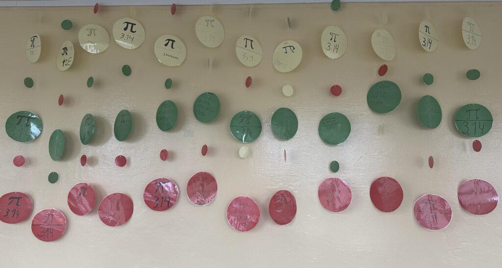 Mokiniai kūrybiškai pasinėrė į matematikos pasaulį, atliko įvairias užduotis, susijusias su Pi simboliu.
