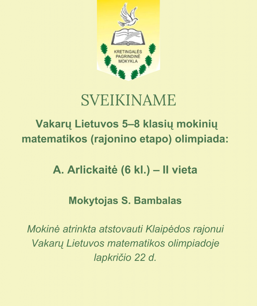A. Arlickaitė atrinkta atstovauti Klaipėdos rajonui