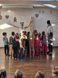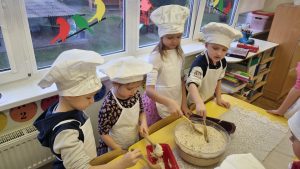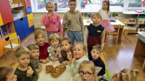 Vasario 5-ąją, Šv. Agotos – duonos dieną, mūsų mokyklos bendruomenėje netrūko šilumos, juoko ir gardžių kvapų. Girkalių skyriuje vaikus aplankė dvi linksmuolės pelytės – mokytojos S. Anužienė ir L. Lukošienė. Jos ne tik praskaidrino dieną smagiais žaidimais, dainomis ir rateliais, bet ir priminė, kokia svarbi yra duona mūsų kasdienybėje. Tuo tarpu Kretingalės ikimokyklinio ir priešmokyklinio ugdymo „Drugelių“ grupės vaikai (mokytoja R. Sendrienė) leidosi į duonos kelią – nuo mažo grūdelio iki garuojančio kepalėlio. Patys minkė, kepė, ragavo ir dosniai vaišino kitus. Tegul ši duonos diena primena mums ne tik tradicijas, bet ir bendrystės džiaugsmą.