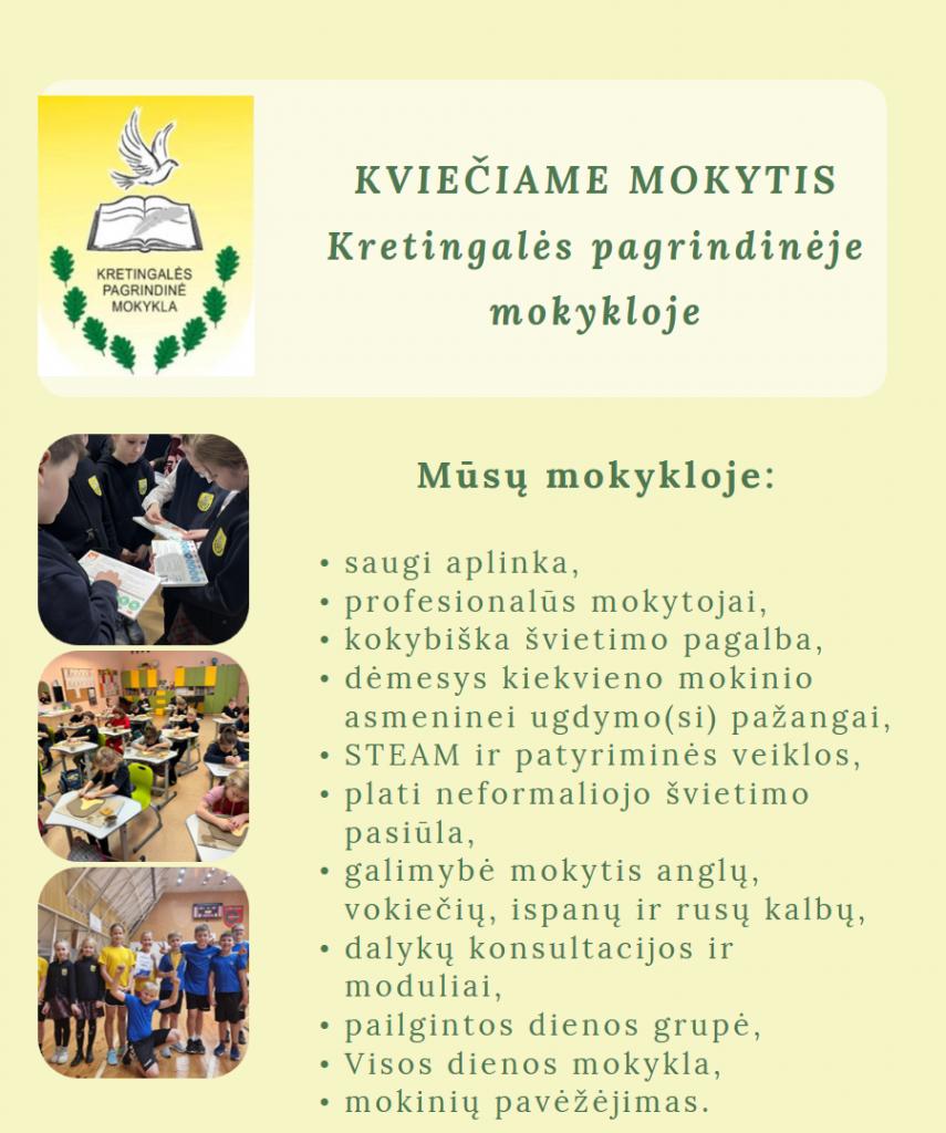 Kviečiame mokytis Kretingalės pagrindinėje mokykloje
