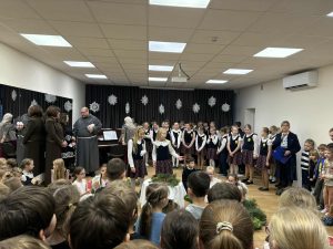 Renginyje dalyvavo kunigas brolis Piotr Strocen OFM Conv, kuris visus pasveikino ir pašventino Advento vainiką, primindamas vaikams Advento laikotarpio prasmę. Po šventinimo mokyklos direktorė uždegė pirmąją Vilties žvakę, skelbdama Advento kelionės pradžią.