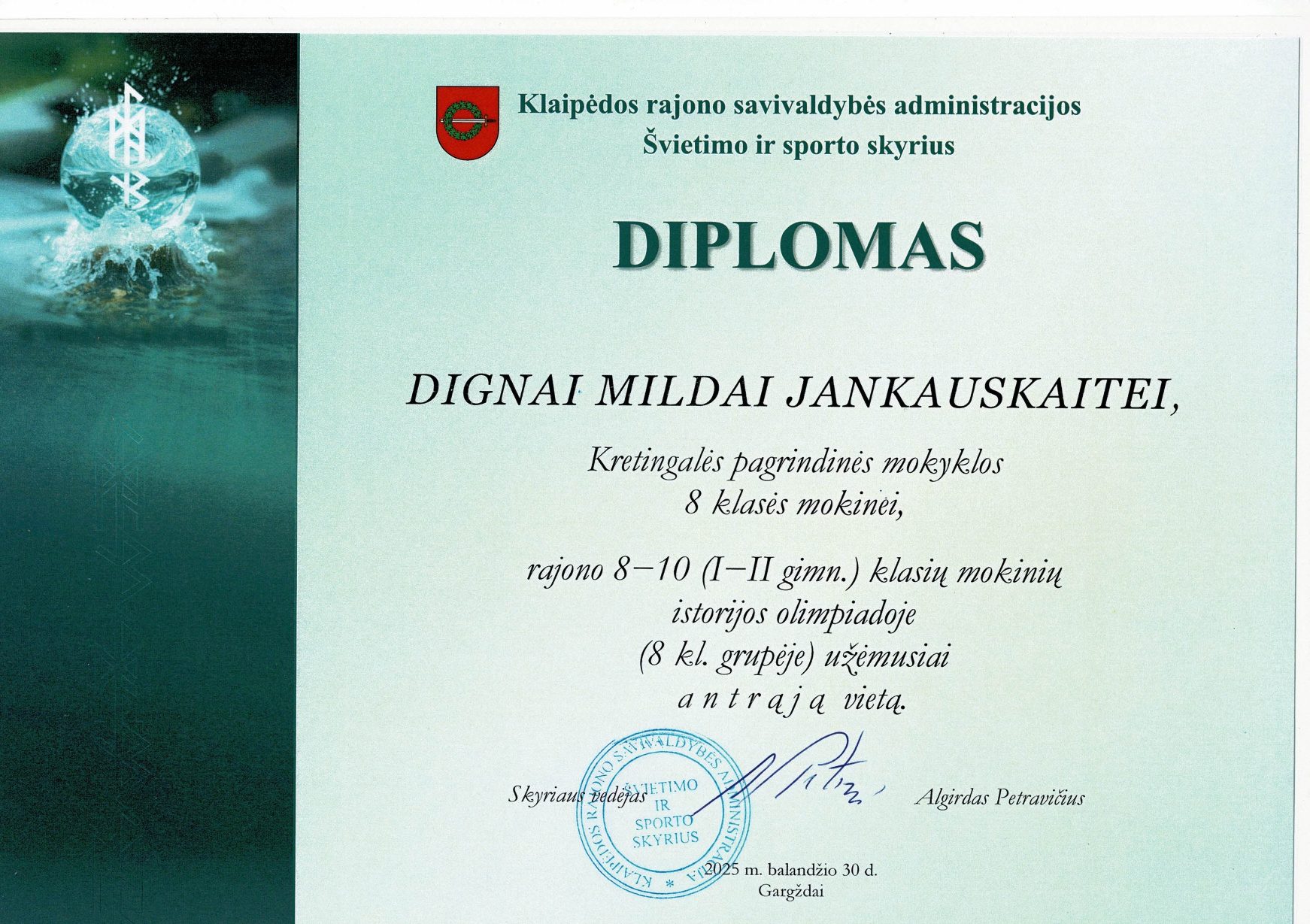 Klaipėdos rajono 8–10 (I–II gimn.) klasių mokinių istorijos olimpiadoje mūsų mokinės pelnė prizines vietas! Sveikiname