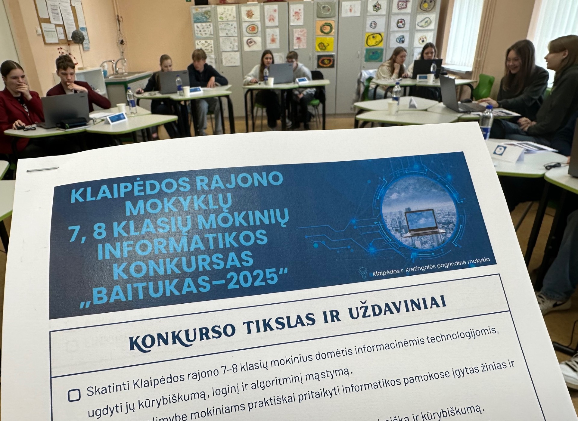 Gegužės 6 d. mūsų mokykloje vyko Klaipėdos rajono mokyklų 7–8 klasių mokinių informatikos konkursas „Baitukas