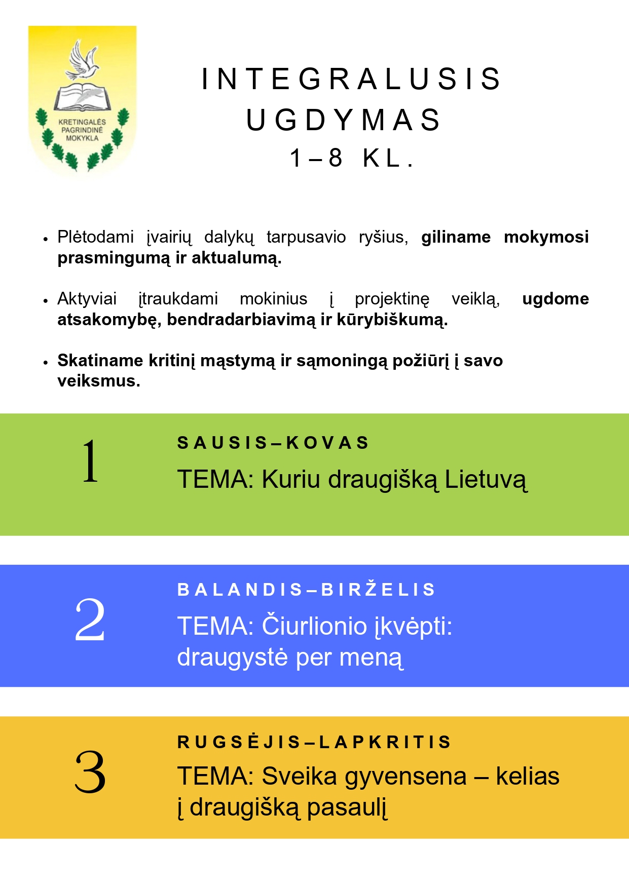 Kretingalės mokyklos aštuntokai, prisidėdami prie integruoto ugdymo iniciatyvos „Kuriu draugišką Lietuvą“, dalyvavo projektinėje veikloje, kurioje