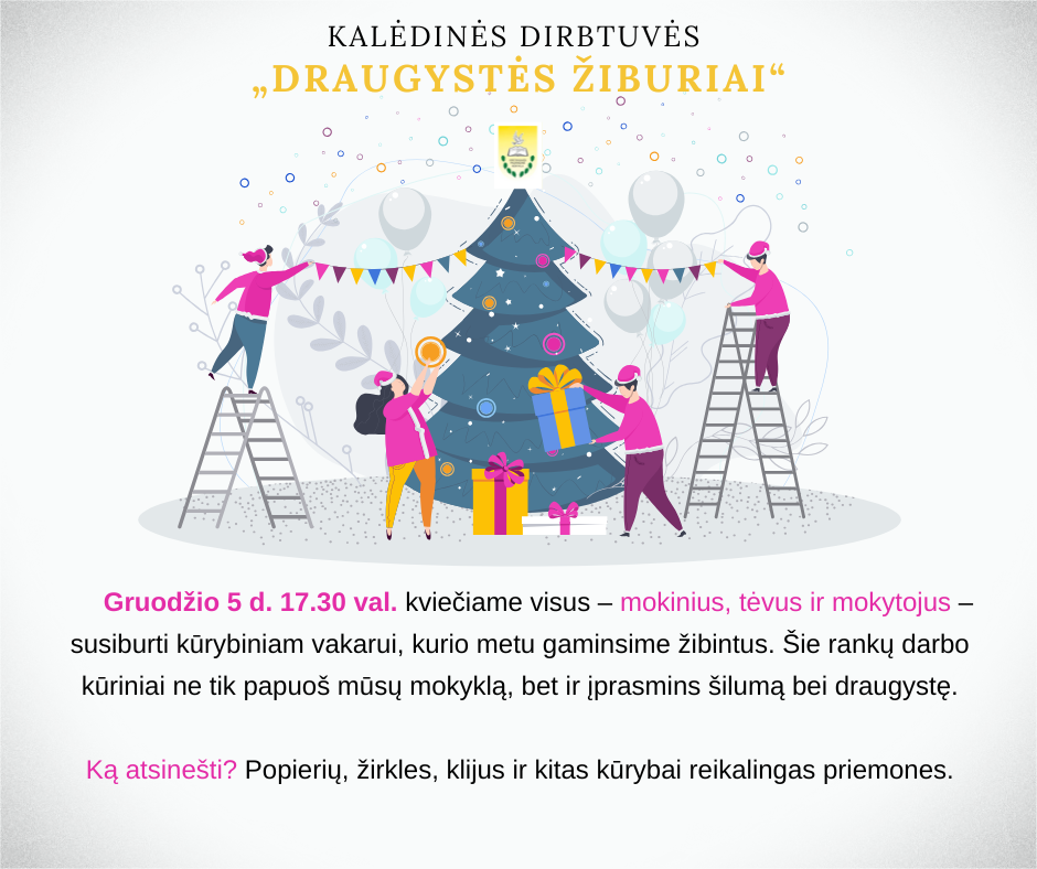 Kviečiame priešmokyklinio ugdymo grupės vaikus, 1–8 kl. mokinius, jų tėvelius ir mokytojus kartu kurti šventinę