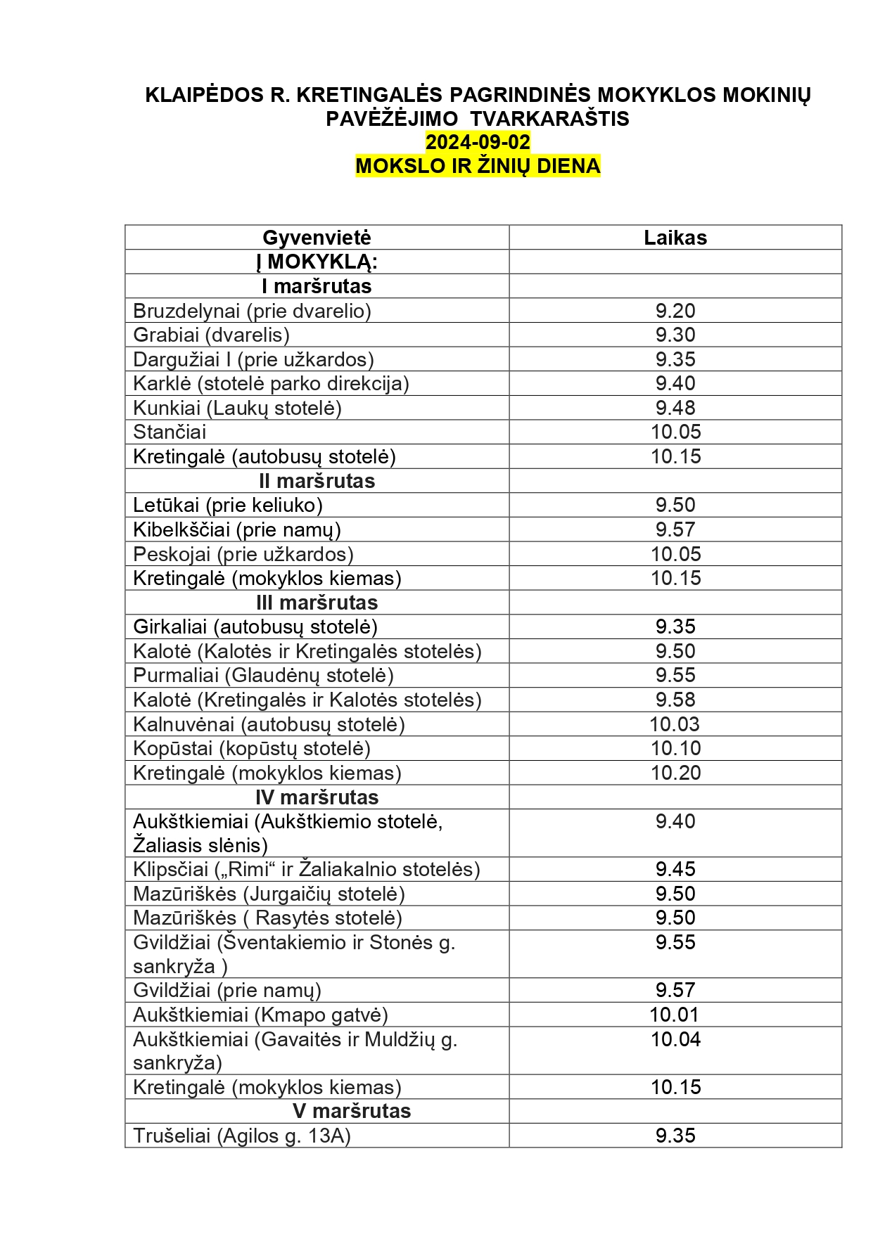 Mokinių pavėžėjimas 2024–2025 m. m. (nuo 2024-09-09): skaityti Mokinių pavėžėjimas I savaitę (2024-09-03 –