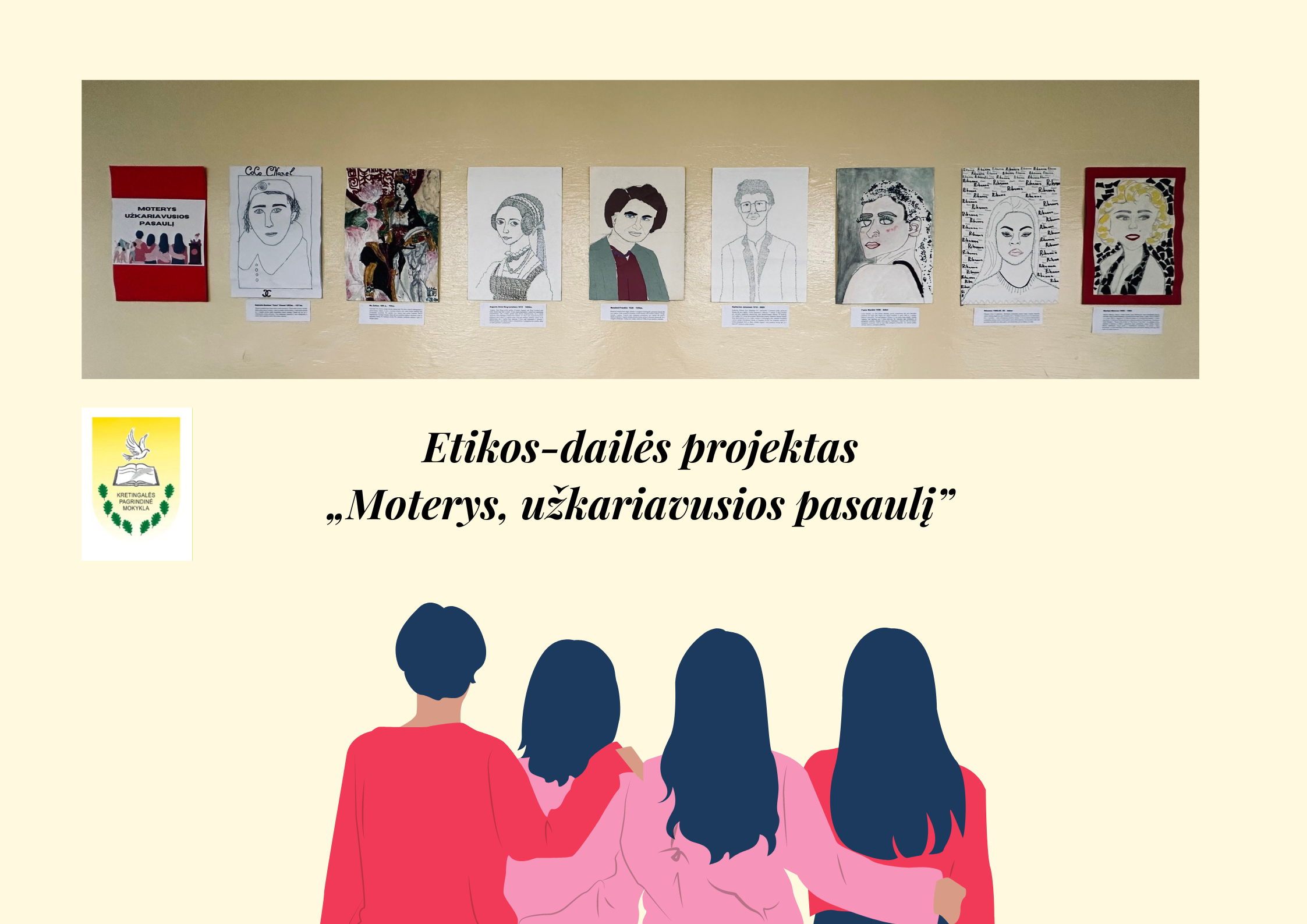 7 kl. mokiniai turėjo integruotą dailės ir etikos pamoką, kurios metu vykdė kūrybinį projektą „Moterys,
